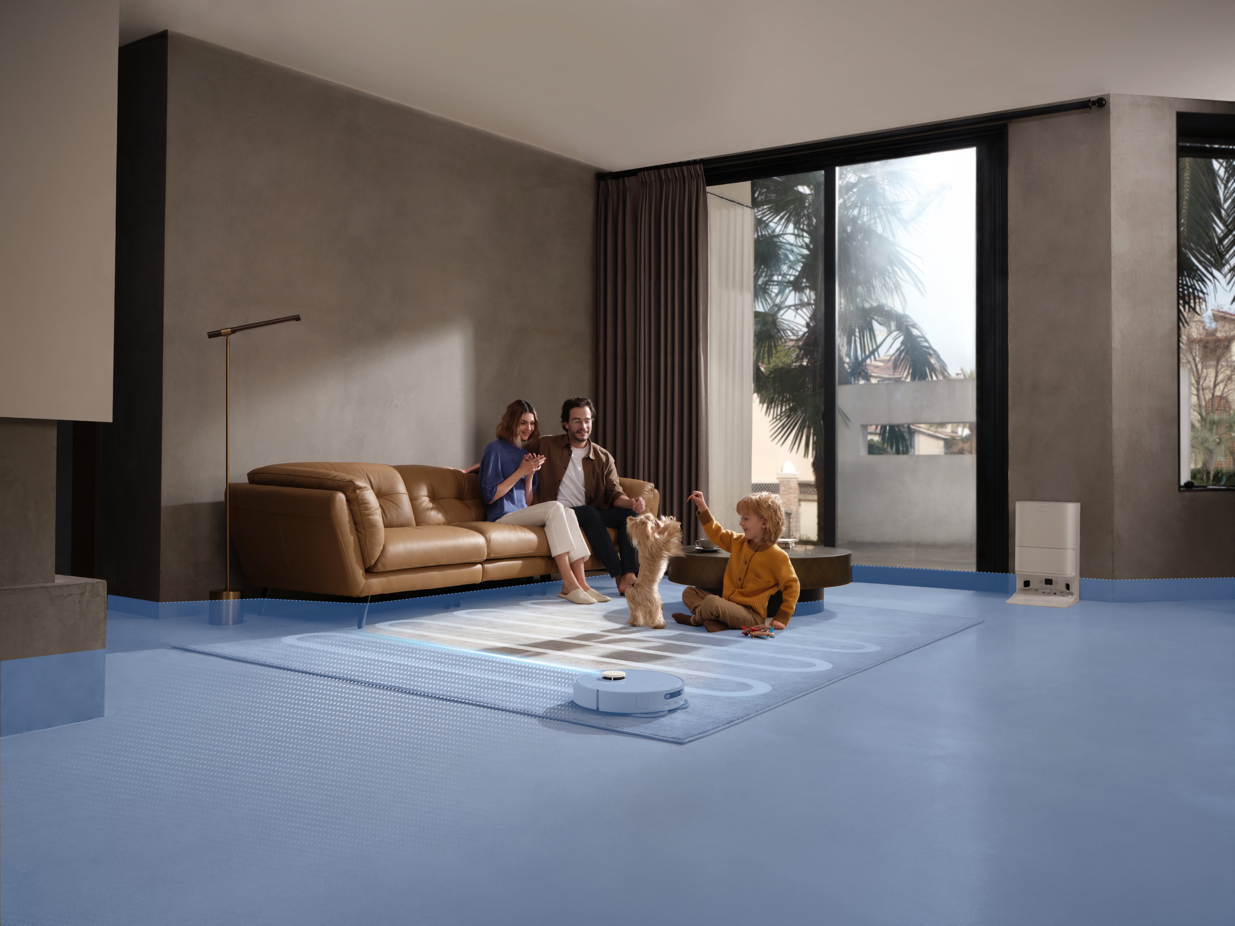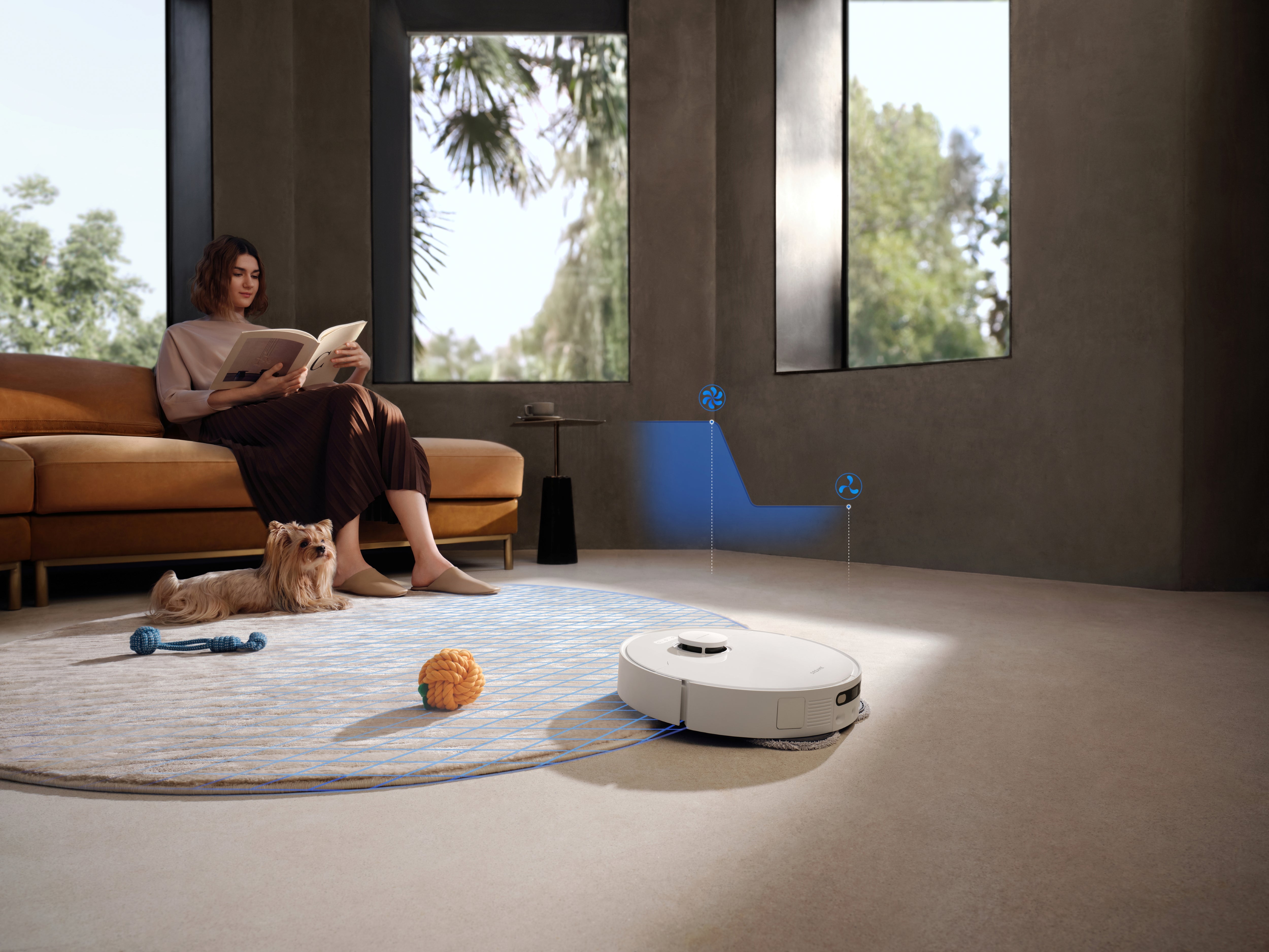 The vacuum features Ultrasonic Carpet Sensing, automatically boosting suction on carpets and removing embedded dirt for a deep clean. Plus, its mops lift up to 10.5mm* on low-pile carpets, keeping them dry and enhancing cleaning efficiency.