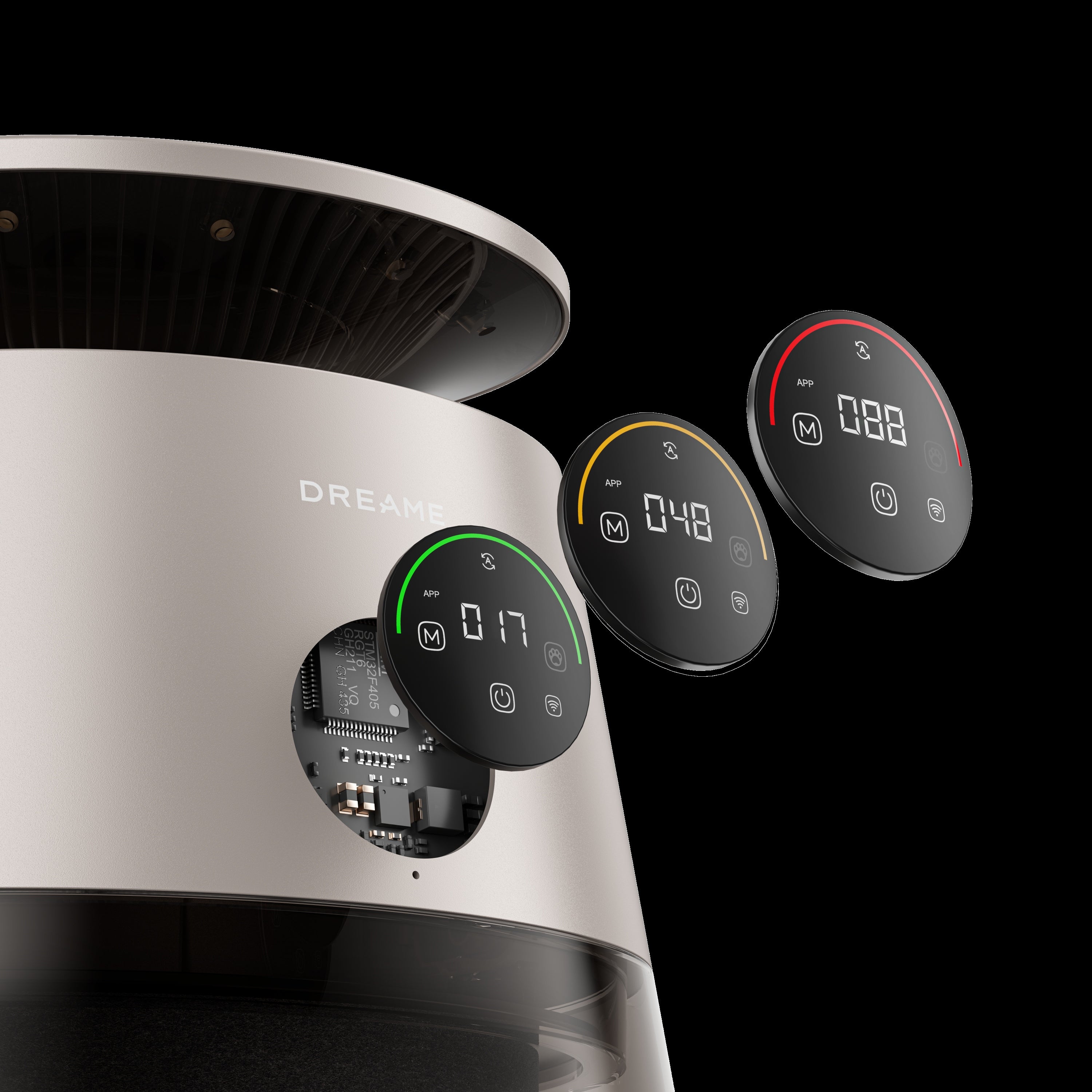 Intelligent Digital DisplayLight strip dynamically changes color with air quality, visually indicating PM2.5 index. When excessive PM2.5 are detected, Auto Purification Mode* is triggered to intelligently purify the indoor air.