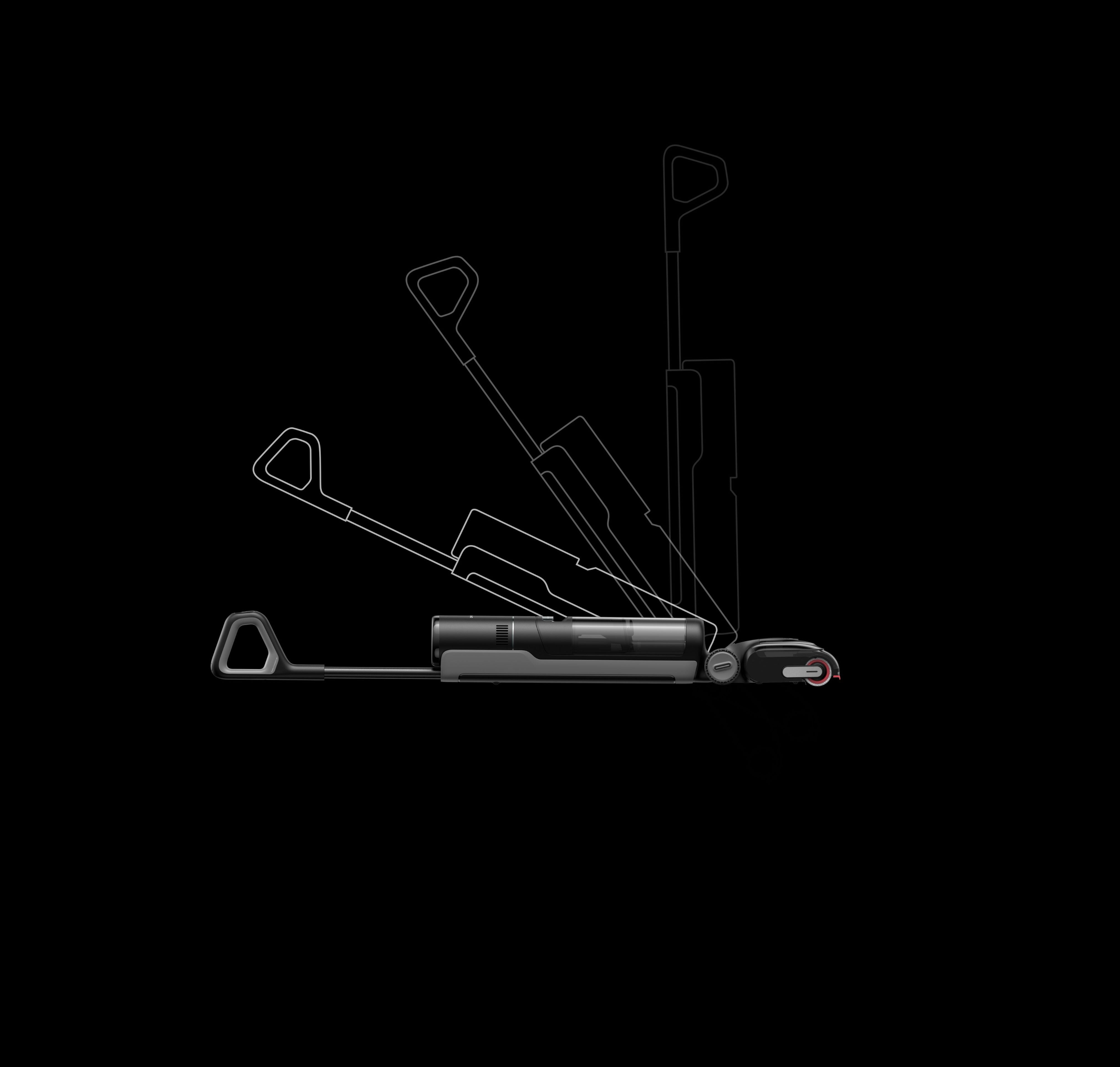 H15 Pro fully reclines to 180° and hugs the floor seamlessly, fitting into spaces as low as 14cm for the body and 9.6cm for the brush head*. The used water tank securely holds the dirty water, preventing any damage to the main motor and thus allowing H15 Pro to maintain up to 21,000Pa* suction power even when cleaning under beds and sofas