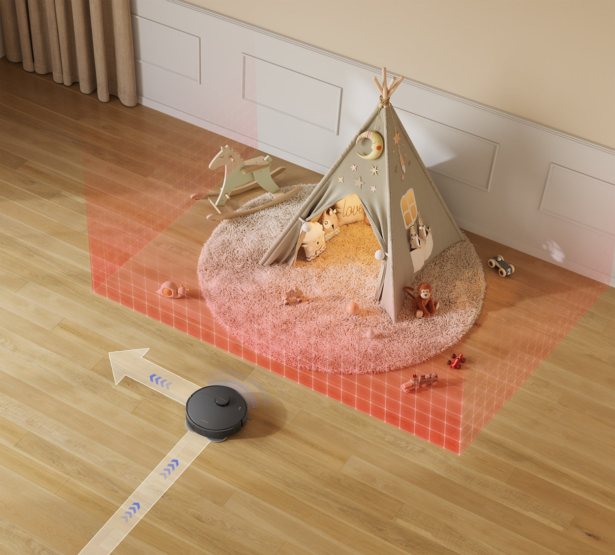 L10s Pro Gen 2' 3DAdapt Obstacle Avoidance System avoids potential hazards, such as shoes, and cleans around objects, reducing the risk of encountering obstacles.