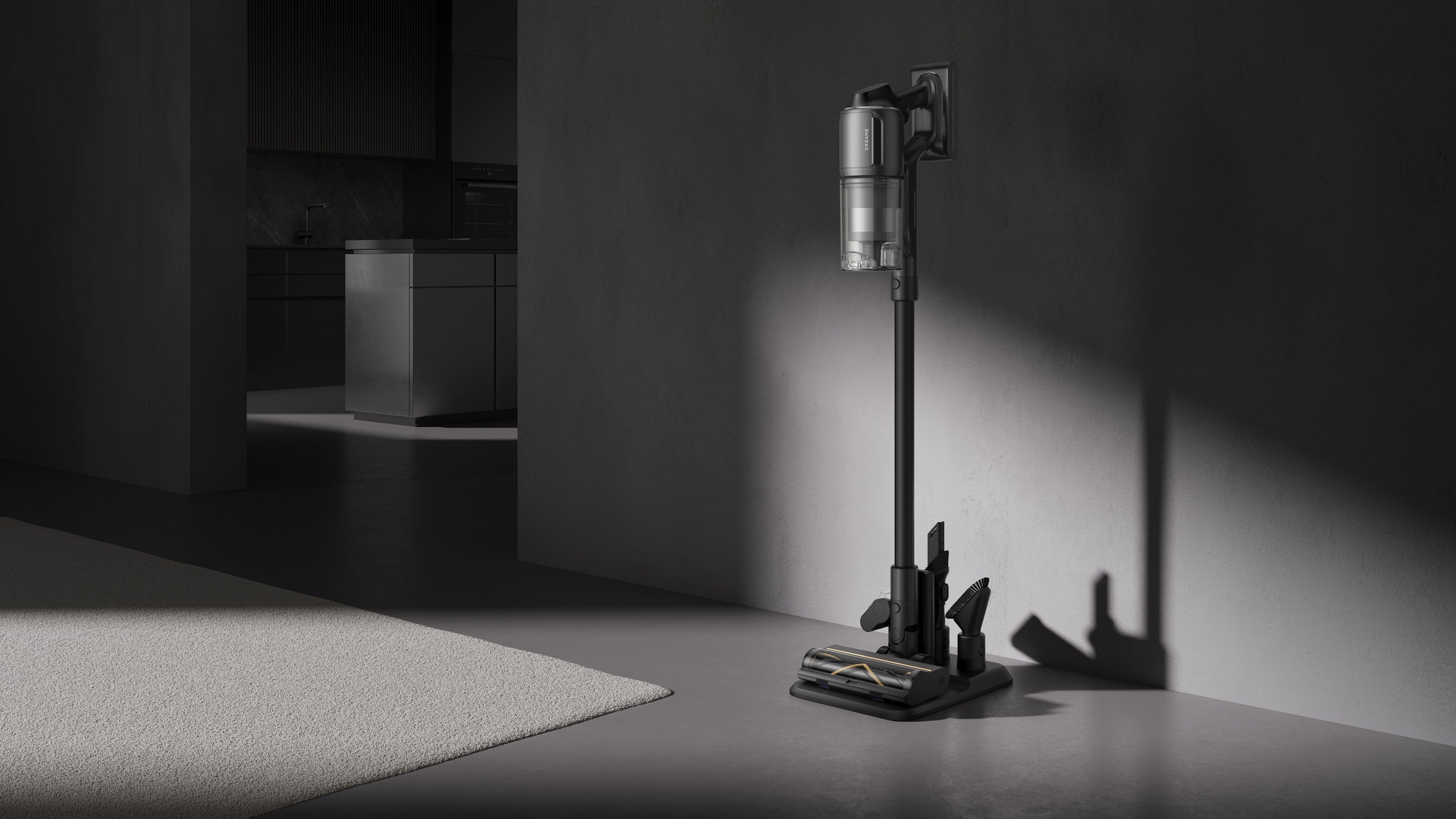 The soft roller brush equips with a celeste light to expose hidden dust while efficiently cleaning hard-to-reach edges on hard floors. With a reduced 7mm* distance to the wall, it tackles side cleaning challenges and picks up debris along baseboards smoothly.