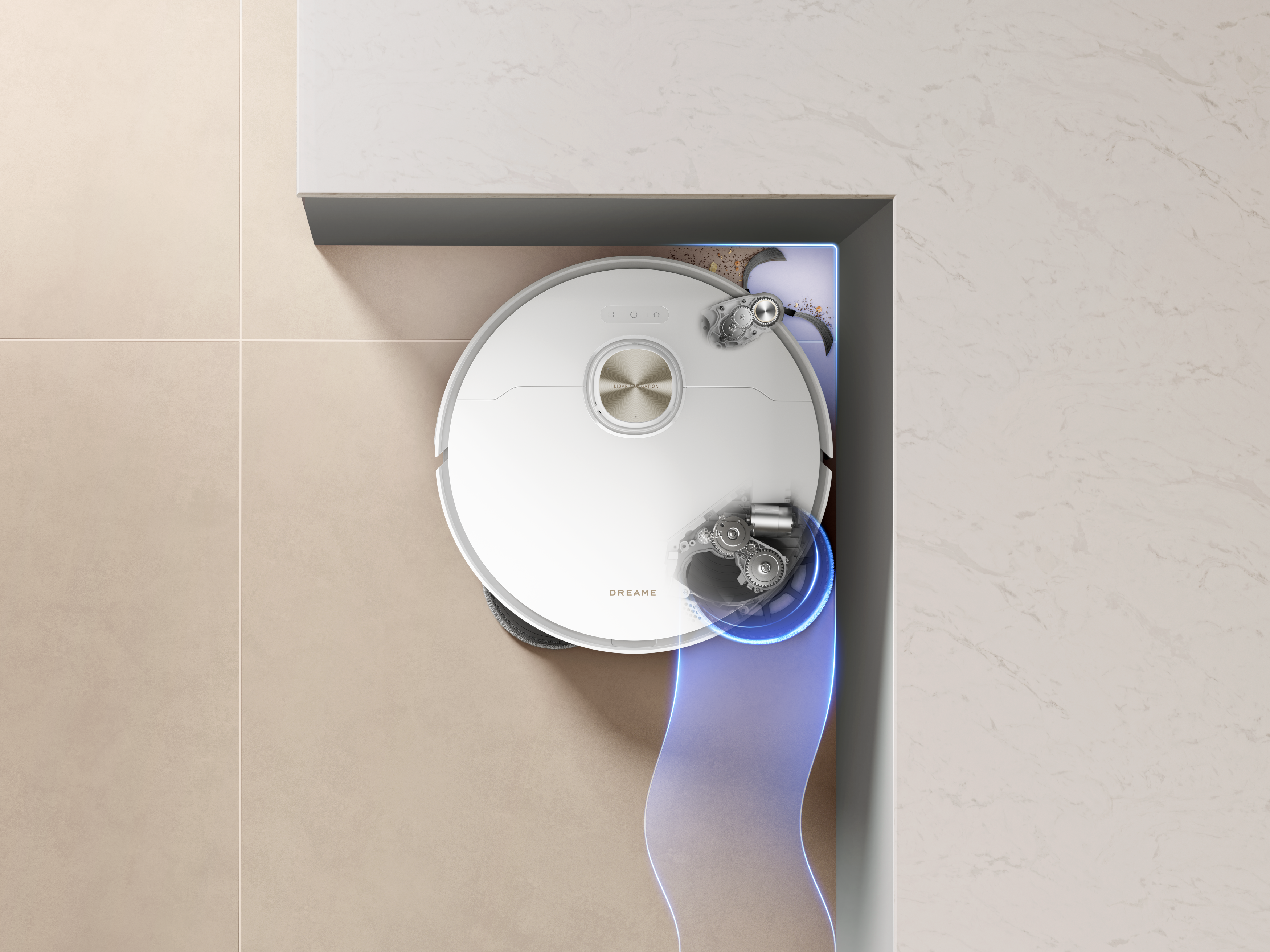 L50s Pro Ultra’s extendable side brush is designed to capture dust from right-angle corners, beneath curved furniture, and in other hard-to-reach spaces. By dynamically extending when needed, it helps improve corner coverage and edge cleaning consistency.