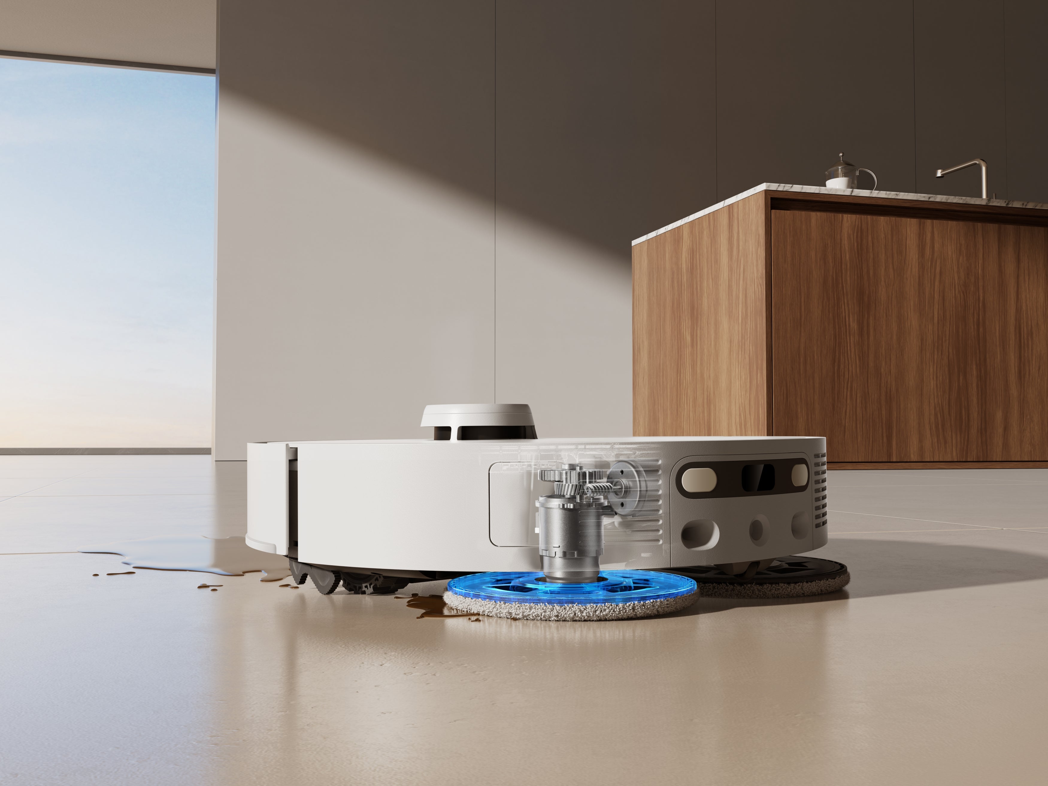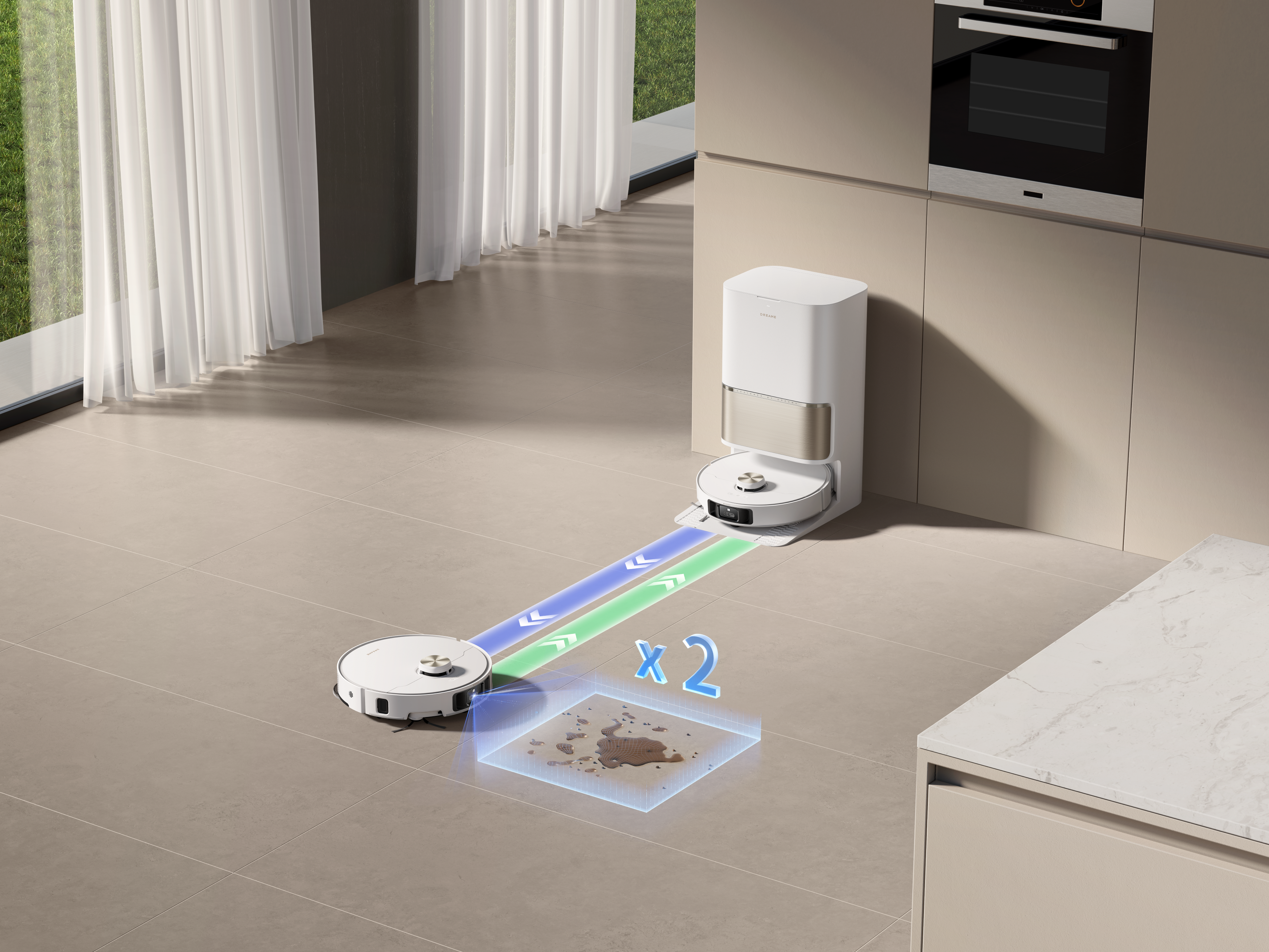 AI-powered stain detection targets messes with focused cleaning patterns, including repeated passes and automatic mop rewashing for better results. Increased mop pressure enhances contact with the floor, helping remove stubborn stains more effectively while reducing the need for manual cleaning.