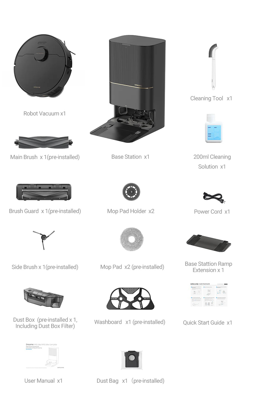 4. 12,000Pa: Based on tests in Dreame Lab. Actual performance may vary depending on usage.